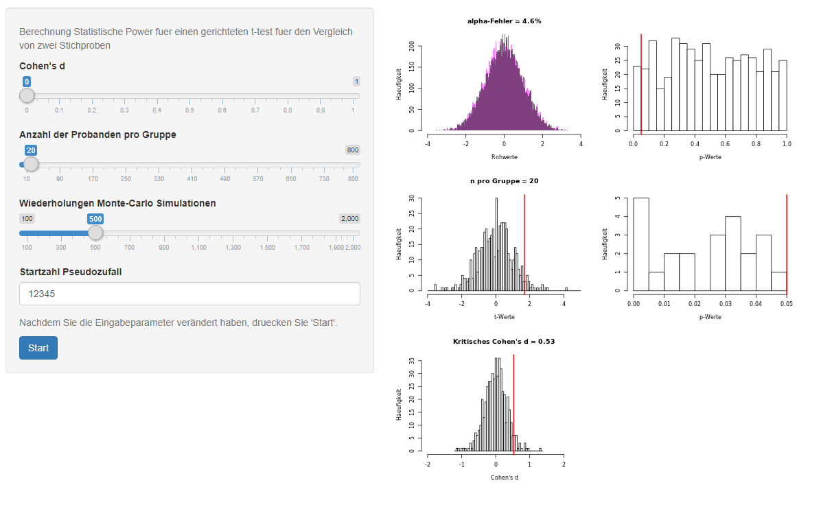 Relation between effect size, p-value distribution, n, alpha-error, and power.
